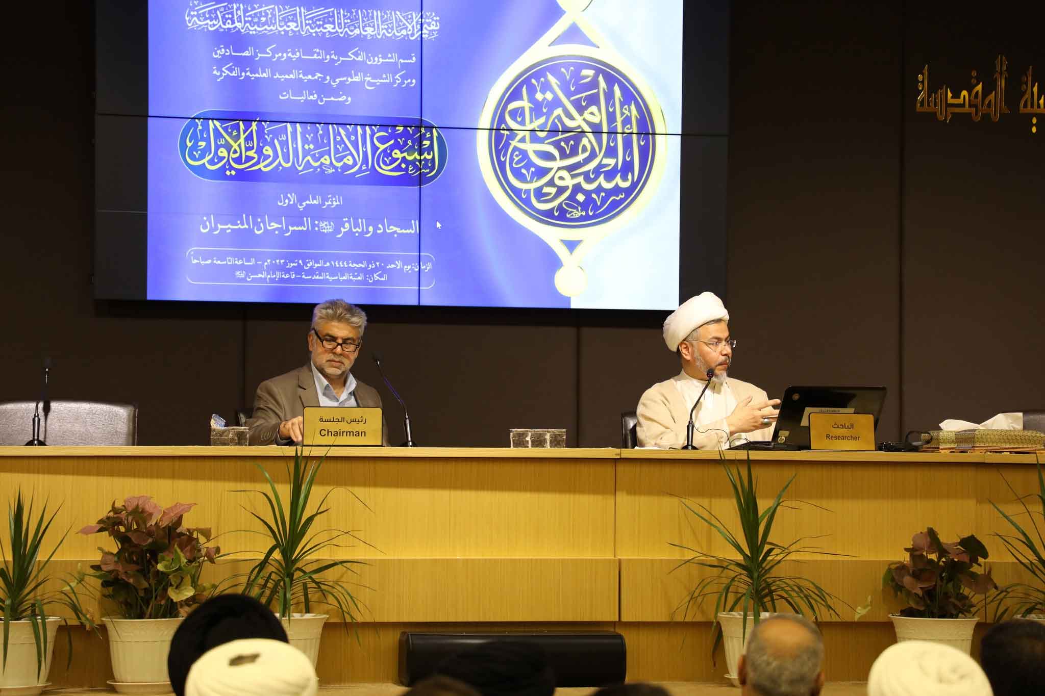 تغطية إعلام مركز الصادقين (عليهما السلام) لمؤتمر أسبوع الإمامة الدولي الاول ليومه الثالث تحت عنوان (السجاد والباقر عليهما السلام السراجان المنيران)الدكتور السيد عبد الكريم حسن بور ممن قبلت بحوثهم وكان بحثه بعنوان (الإمام الباقر عليه السلام من منظور المستشرقين).